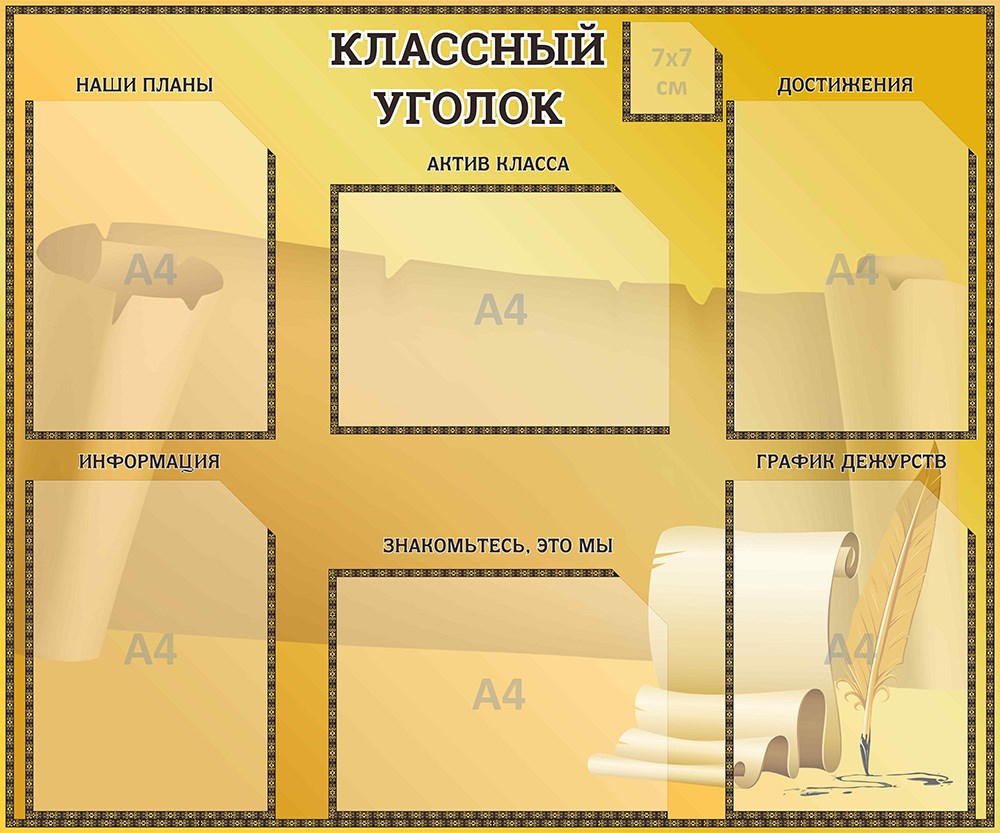 Стенд «Классный уголок», 90х75 см, 7 карманов с цветным кантом